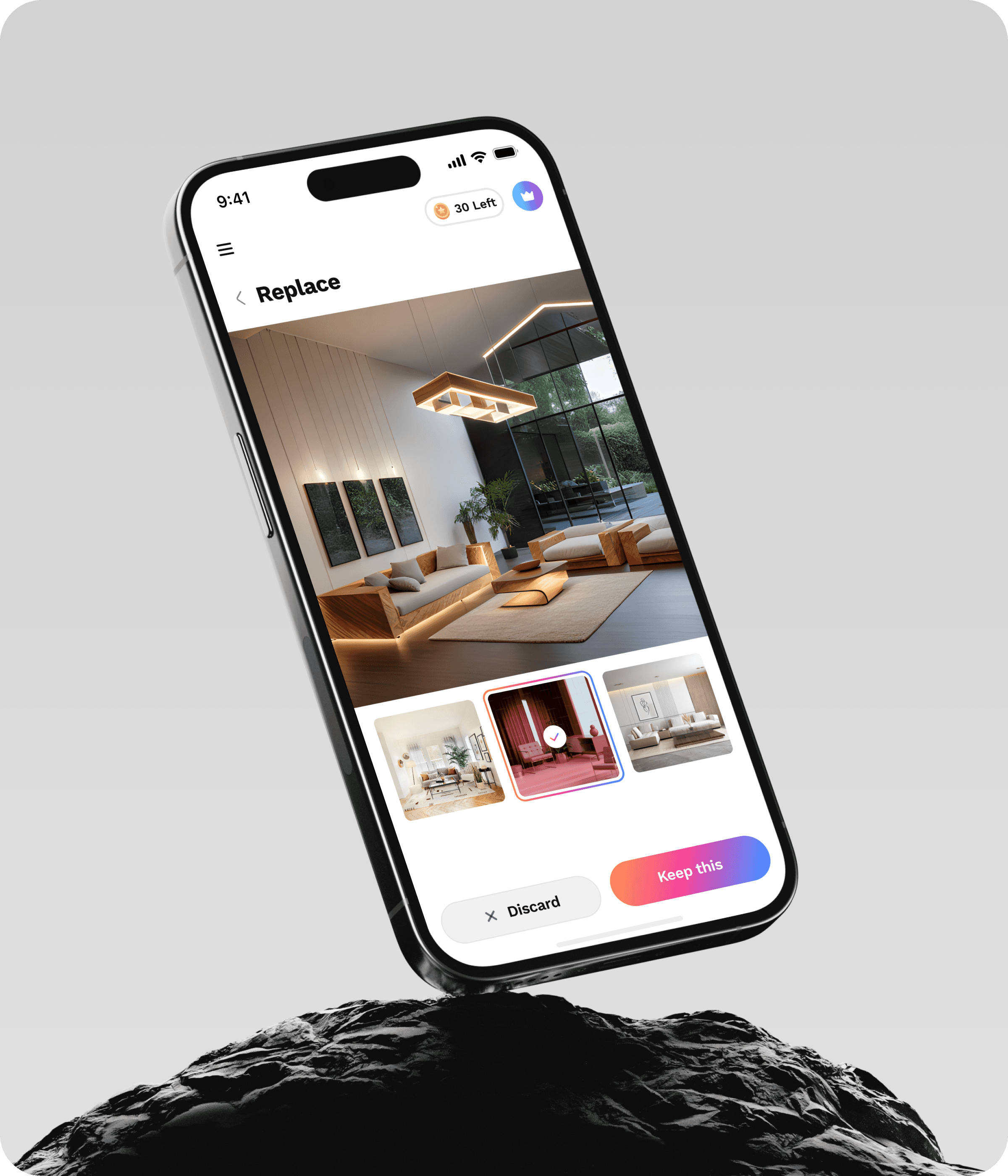 Through focused research and rapid iteration, the UI design was locked within the engagement window. The final experience made complex AI-driven transformations feel simple and accessible, enabling users to reimagine their spaces quickly and confidently. The app balanced creative freedom with usability-supporting both professional designers and casual users.