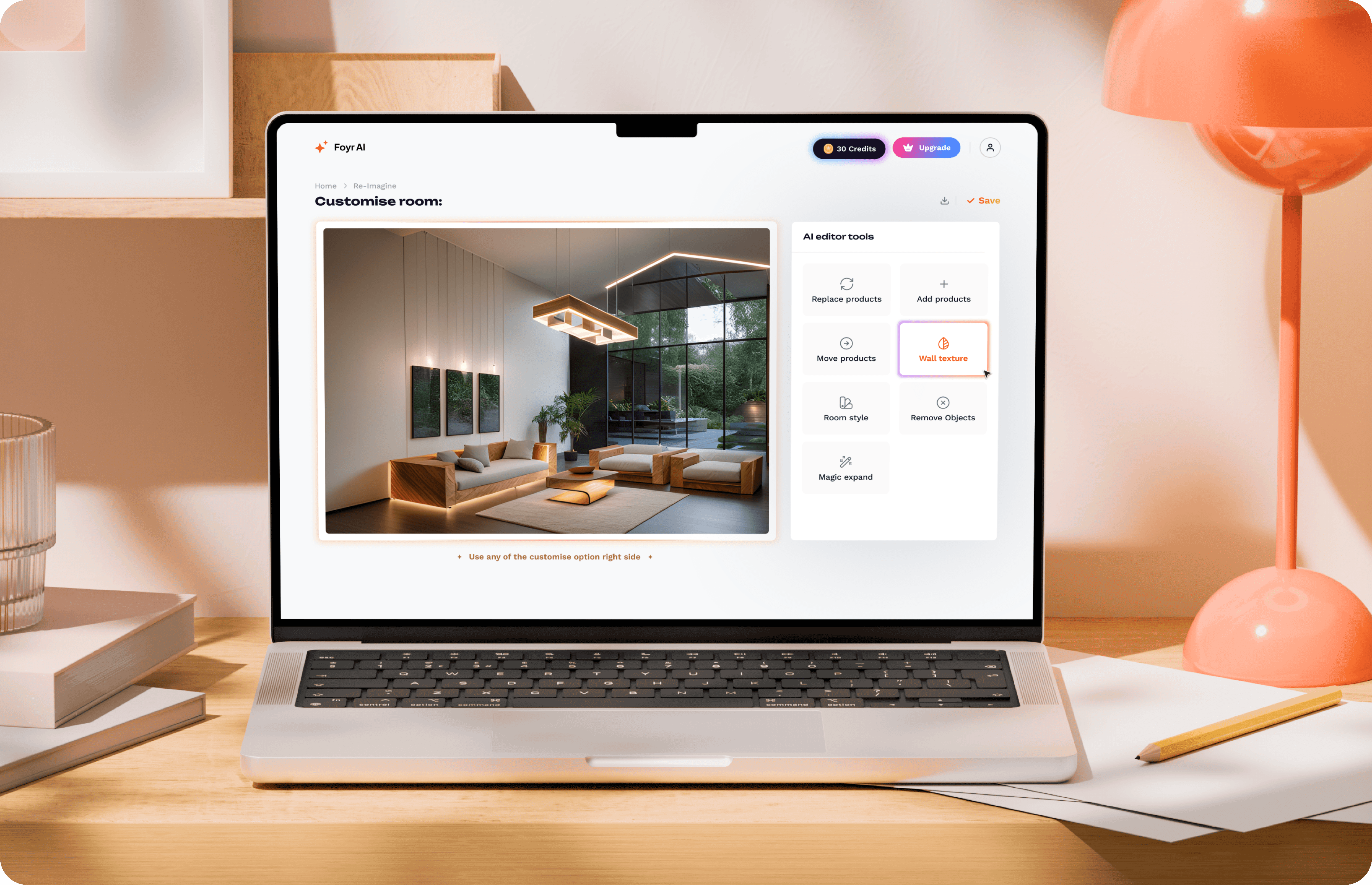 The Foyr mobile app was designed to help interior designers and everyday users visualise better spaces using AI. The core idea was simple: users upload photos of existing rooms or bedrooms, and the app intelligently enhances the space by refining layouts, replacing furniture, and improving overall design-similar in capability to tools like Adobe Firefly, but focused on interiors.